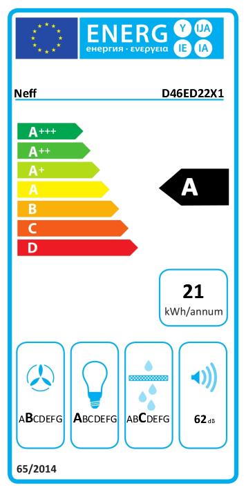 D46ED22X1 N 50, Flachschirmhaube, 60 cm, SilbermetallicNEFFFlachschirmhaube: Die Flachschirmhaube macht sich im Oberschrank praktisch unsichtbar und ist ideal für klare Küchenfronteninkl. MwSt., ggf. zzgl. VersandProduktdatenblattProduktanfrageHaben Sie Fragen zu diesem Produkt?Produkt anfragenArtikel-Merkmale:Zubehör Dunstabzug: vervollständige deine Haube mit deinem separat erhältlichen Lieblingsgriff.Efficient Drive Motortechnologie: leiser und energieeffizienter Motor für mehr Ruhe in der Küche.Intensivstufe: steigert die Lüfterleistung bei starkem Kochdunst.LED-Licht: alles erleuchtet beim Kochen.Automatisches Nachlaufzeit: Der Lüfter läuft noch mehrere Minuten weiter, nachdem Sie sie ausgeschaltet haben.HerstellerNEFFWerksnummerD46ED22X1TypennummerD46ED22X1EAN4242004251118Bauform60 cm Flachschirmhaube, silbermetallicFür die Installation in einem 60 cm breiten Spezial-Oberschrank.Wahlweise Abluft- oder UmluftbetriebFür Umluftbetrieb wird ein Standard Umluftset (Sonderzubehör) benötigtKomfortElektronische Steuerung seitlich3 Leistungsstufen und 1 IntensivstufeIntensivstufen mit automatischer Rückstellung nach 6 MinutenAutomatischer Gebläsenachlauf mit digitaler AnzeigeAusstattungGleichmäßige, helle Beleuchtung mit 2 x 1,5 W LED-ModulFarbtemperatur: 3500 KBeleuchtungsstärke: 294 luxMetallfettfilter, spülmaschinengeeignetBetriebsart und LeistungLüfterleistung nach EN 61591 bei Abluftbetrieb:Max. Normalstufe: 268m³/hIntensivstufe: 400 m³/hGeräuschwerte nach EN 60704-2-13 bei Abluftbetrieb:Max. Normalstufe: 62dB(A) re 1 pWIntensivstufe: 69 dB(A) re 1 pWGeräusch min./max. Normalstufe: 49/62 dB1 Hochleistungsgebläse: Efficient Drive Motortechnologie: leiser und energieeffizienter MotorEfficient Drive Motortechnologie: leiser und energieeffizienter MotorPlanungs- und InstallationsinformationGerätemaße (HxBxT): 203 x 598 x 290 mmEinbaumaße (HxBxT): 162 x 526 x 290 mmAbluftausgang Ø 150 mm (Reduzierstück Ø 120 mm beiliegend)Lieferung mit RückstauklappeLänge Anschlusskabel: 1.75 m mit SteckerOhne Griffleiste (als Sonderzubehör erhältlich)Warenzeichen des LieferantenNeff Modellkennung des LieferantenD46ED22X1 Energieeffizienzklasse ... auf einer Skala von A+++ (höchste Effizienz) bis D (geringste Effizienz)A Jährlicher Energieverbrauch21,0 kWh/JahrKlasse fluiddynamische Effizienz ... auf einer Skala von A (höchste Effizienz) bis G (geringste Effizienz)B fluiddynamische Effizienz24,6 %Beleuchtungseffizienzklasse ... auf einer Skala von A (höchste Effizienz) bis G (geringste Effizienz)A Beleuchtungseffizienz71,7 lx/WattKlasse Fettabscheidegrad ... auf einer Skala von A (höchste Effizienz) bis G (geringste Effizienz)C Fettabscheidegrad79,6 %Luftstrom bei maximaler Geschwindigkeit268 m³/hLuftstrom bei minimaler Geschwindigkeit160,7 m³/hLuftschallemissionen minimal verfügbare Geschwindigkeit (in dB(A) re 1 pW)49 dB(A) re 1 pWLuftschallemissionen maximal verfügbare Geschwindigkeit (in dB(A) re 1 pW)62 dB(A) re 1 pWAnschlusswert74 WArt der Schnittstelle zur AnsteuerungNein BauartFlachschirmhaube BedienelementeTaste Breite598 mmBruttogewicht9.3 kgDrahtlose Kommunikation möglichNein Farbe GehäuseSilbermetallic Fern-UpgradeNein Frequenz50; 60 HZGerätefarbeSilbermetallic Gewicht7.7 kgHöhe203 mmLänge Anschlusskabel175 cmMarkennameNeff Maßzeichnungen6765149_1.jpg;6765149_2.jpg;6765149_3.jpg;6765149_4.jpg;6765149_5.jpg;6765149_6.jpg;6765149_7.jpg Material FettfilterAluminium waschbar Materialeigenschaftverzinkt Remote-Update zur WartungNein RückstauklappeJa Spannung220-240 VSprachsteuerungNein SteuerungElektronisch Tiefe290 mmTypeD46ED22X1 Sie können gleich mitbestellen:NEFFZ54TH60D1, Griffleiste, Edelstahl 213,00 EURNEFFZ54TH60N1 Griffleiste, Edelstahl 62,00 EURNEFFZ51ITB1X4, Clean Air Geruchsfilter mit Aktivkohle, Ersatzfilter für Umluftbetrieb 72,00 EURNEFFZ51ITI1X4, Clean Air Umluftset, Erstaustattung 92,00 EURHINWEIS: Verantwortlich für die Produktinformationen und Abbildungen dieses Artikels ist die ieQ-systems GmbH & Co. KG.Herstellerkontaktdaten von NEFFhttps://www.neff-home.com/de/service/kontakt-informationinfoneff@bshg.com+49 (0) 89/45 90-04Carl-Wery-Straße 34, 81739 München, DeutschlandHINWEIS: Die Herstellerkontaktdaten werden regelmäßig geprüft. Änderungen seitens der Hersteller können jedoch zeitverzögert bei uns eingehen.×Frage zum Artikel:NEFF - D46ED22X1 N 50, Flachschirmhaube, 60 cm, SilbermetallicArt der KontaktaufnahmeTelefonMailNameVornameStraßePLZOrt*E-Mail*TelefonNEFF - D46ED22X1 N 50AnfrageIch habe die Datenschutzbestimmungen zur Kenntnis genommen* Wir erheben, verarbeiten und nutzen die von Ihnen angegebenen personenbezogenen Daten nur zum Zwecke der Abwicklung der Kontaktanfrage.Captcha**PflichtfelderSenden622,00 EUR
